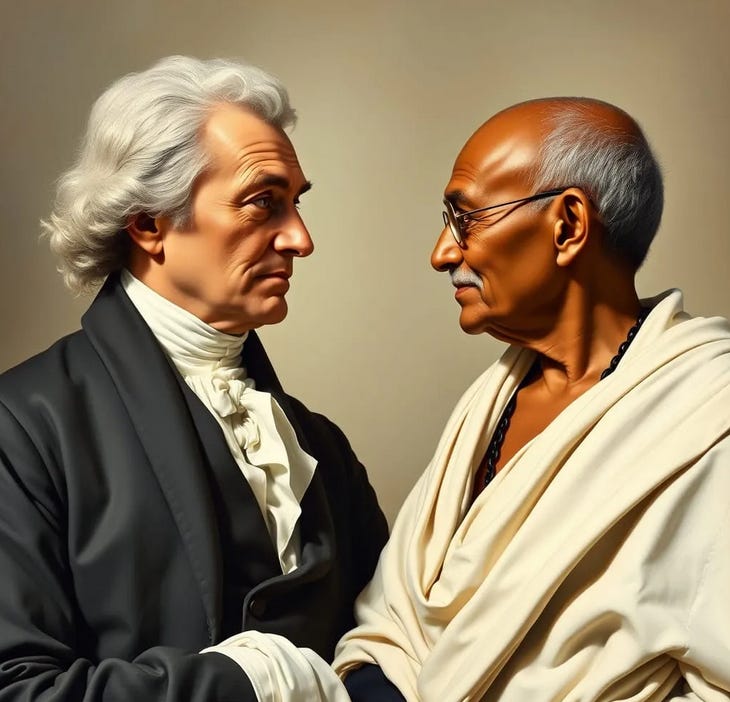 This week I attended a webinar, How Nonviolence Won Independence: India & United States, hoping to learn something new about how nonviolence played a role in the US shaking off its colonial status. While the presenter enthusiastically highlighted the use of tools like boycotts prior to the Declaration of Independence, I was unpersuaded this was a victory for nonviolence. I’ve previously written about the contrast between Thomas Jefferson’s methods and Gandhi’s: